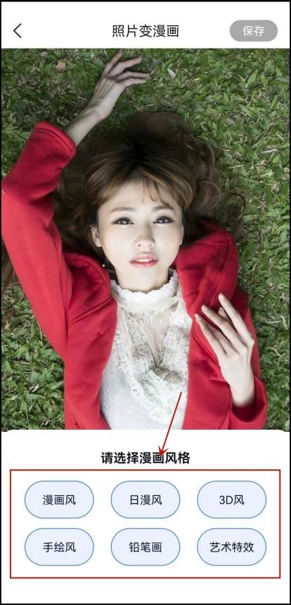选择自己喜欢的漫画效果,软件就会自动生成漫画风的照片,完成后点击“保存”即可。