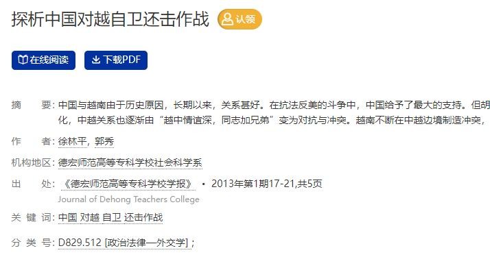[1]徐林平,郭秀.探析中国对越自卫还击作战[J].德宏师范高等专科学校学报,2013(1):17-21