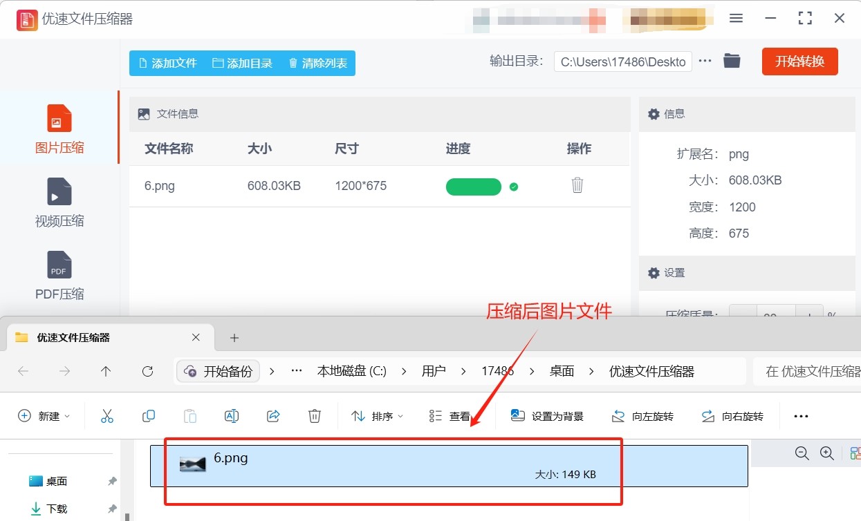 步骤4:软件完成压缩后请大家将软件的输出目录打开,打开软件的输出目录后就可以找到其中压缩好的图片文件。