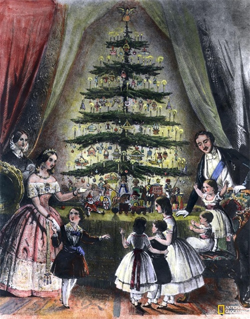 1848年,维多利亚女王和丈夫阿尔伯特亲王(同样来自德国)吸引了全世界王室观察者的注意力,《伦敦新闻画报》刊登了一幅他们全家围坐在一棵装饰圣诞树旁的图片。维多利亚女王是那个时代的潮流引领者,这个传统因此在全世界流行了起来。