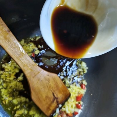 3、加入海鲜酱油,耗油,醋,糖。搅拌均匀,备用。