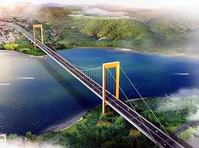 长寿区是重庆市区东部的交通枢纽,距重庆江北机场仅40公里,这里自古以来就是川江上的重要码头,渝长等3条高速公路在此交汇,渝怀铁路亦在此过江。2017年3月9日,在长寿长江大桥上游6.4公里处,一座新的长江大桥开建,这就是长寿长江二桥。图为长寿长江二桥设计效果图。