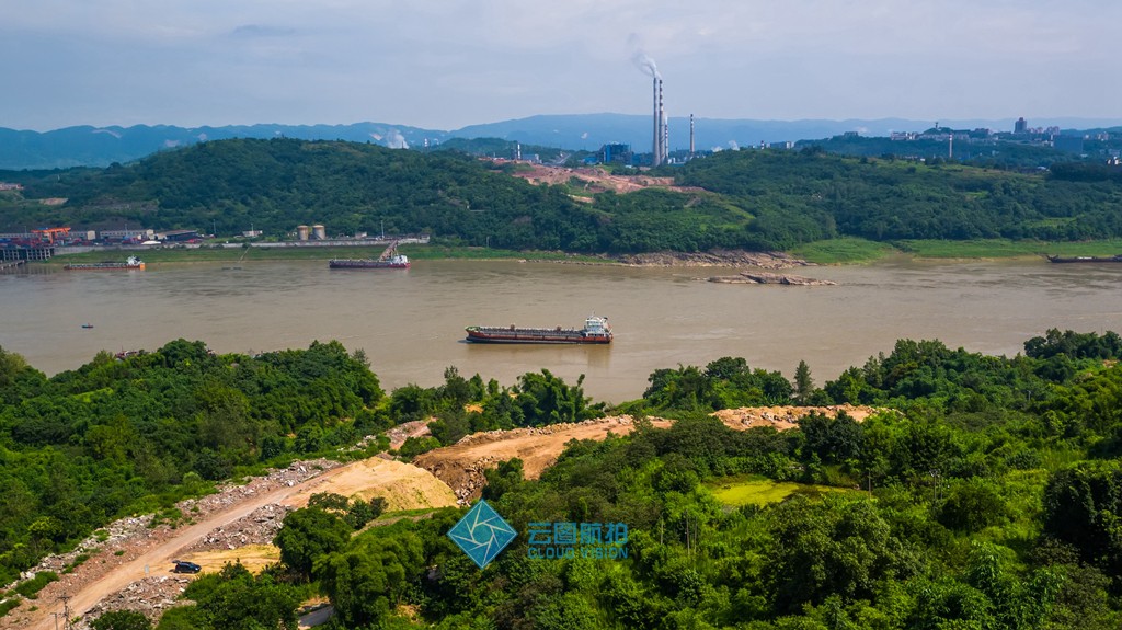目前,大桥施工现场正在进行场地平整等工作。图为北岸工地位于渡口村,紧邻化工区。