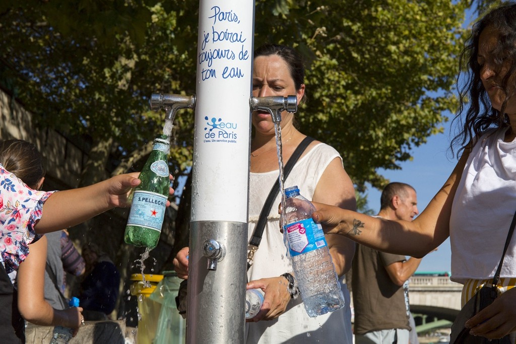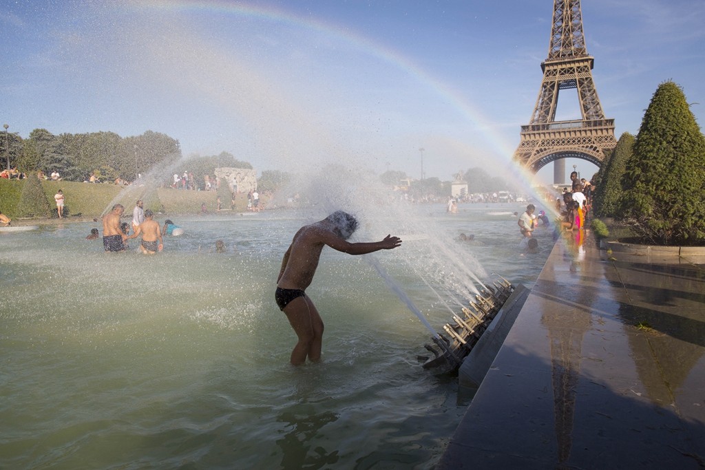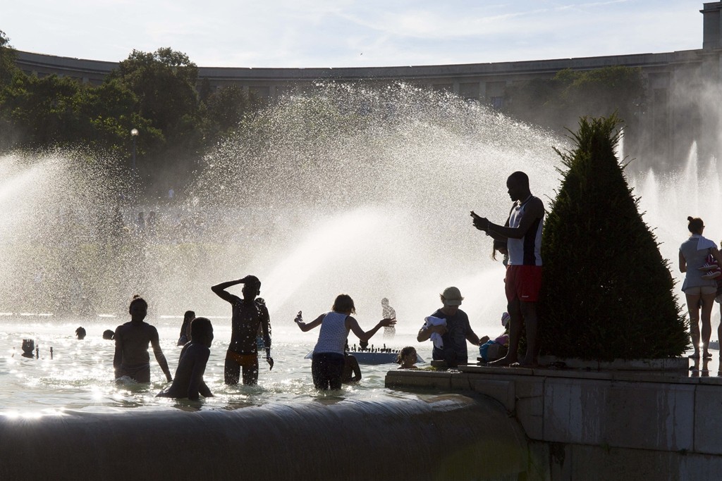 当地时间2019年6月23日,法国巴黎,巴黎市民和游客在塞纳河边、户外喷水池享受夏日午后。为抵御高温侵袭,巴黎市政府在公园和花园等凉爽的公共空间设立特殊“避暑房”(special cool rooms)。据《太阳报》报道,欧洲本周将迎来罕见热浪:法国巴黎27日的气温将高达40℃,德国部分地区的气温预计突破41℃。此外,西班牙、比利时、意大利、瑞士等欧洲国家都将于本周进入高温“炙烤”模式。