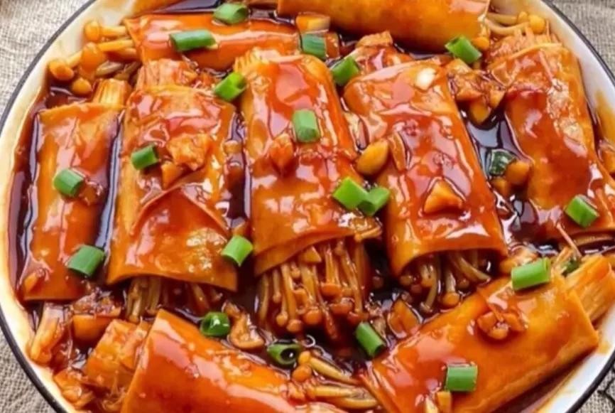 2、千张卷金针菇的做法: