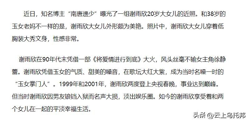 谢雨欣的故事也提醒我们,不要轻易评判他人的人生,每个人都有自己的故事,每个人都有自己的选择。