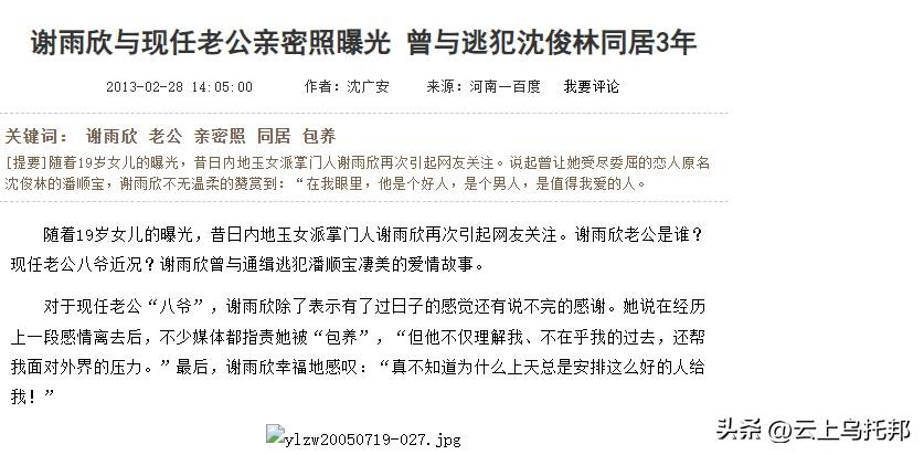 信息来源:河南一百度2013-02-28谢雨欣与现任老公亲密照曝光 曾与逃犯沈俊林同居3年