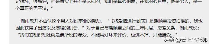她表示自己和潘顺宝是真心相爱,并对潘顺宝的过去毫不知情,然而,无论谢雨欣如何解释,都无法改变公众对她的看法,她的形象受到了严重的损害,事业也陷入了停滞。