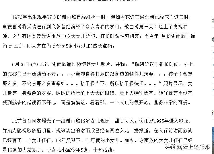 信息来源:新浪娱乐 2013-06-28谢雨欣18岁生女 微博晒5岁小女儿照片