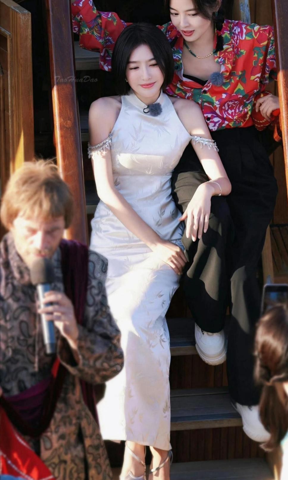 连衣裙的开叉设计更是别出心裁,让她那双修长美腿若隐若现。