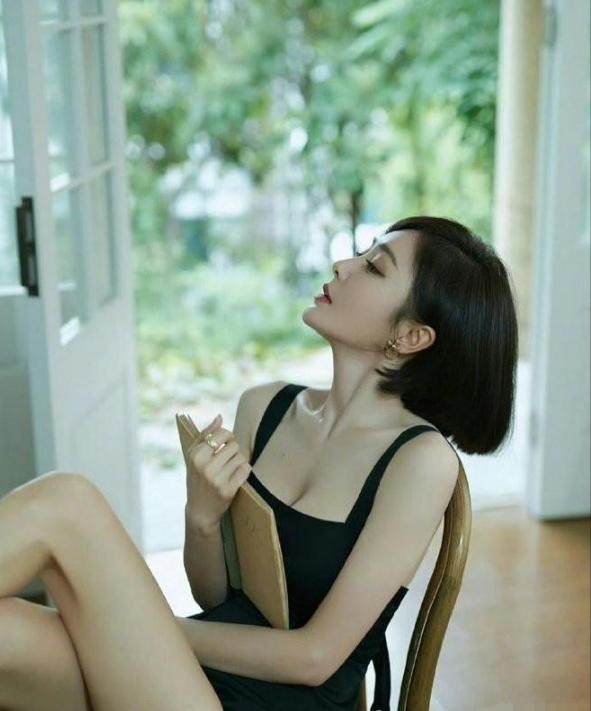 在左小青的写真大片中,她身着一袭黑金色深V连衣裙,惊艳亮相。