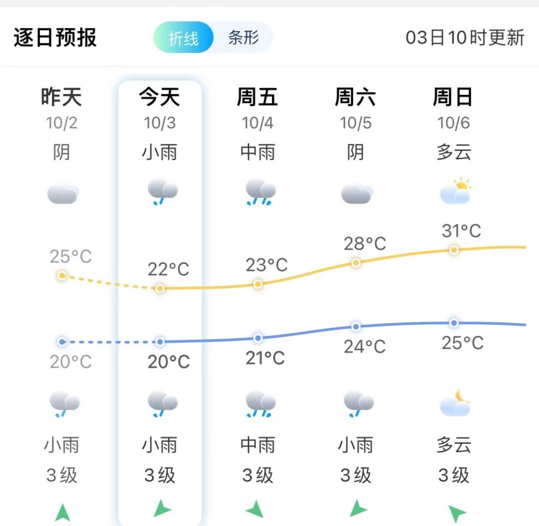 在冷空气影响下,今天福州气温较低,市区最高气温低至22℃,随后气温逐步升高。