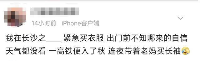 一些没有提前准备厚衣服的游客,来到长沙后的第一件事不是打卡和寻找美食,而是买衣服!有人表示,出门前没有看天气预报,没想到一下高铁就入了秋,“连夜带着老妈买长袖”。