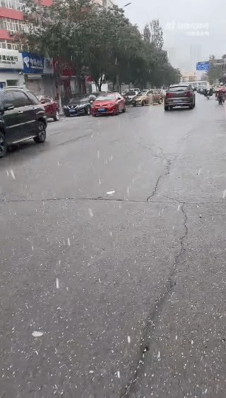 10月1日,山西大同突然晴转雪,大雪纷飞,白茫茫一片,气温下降10℃至16℃。