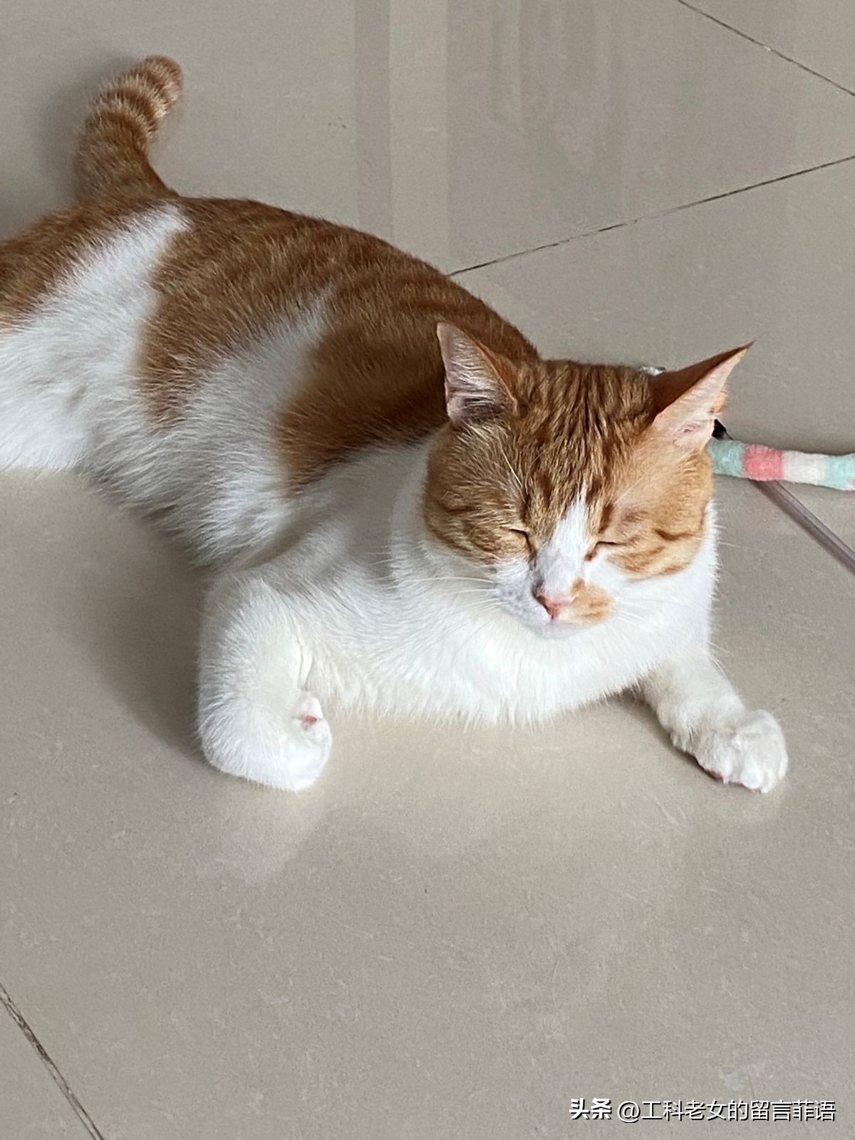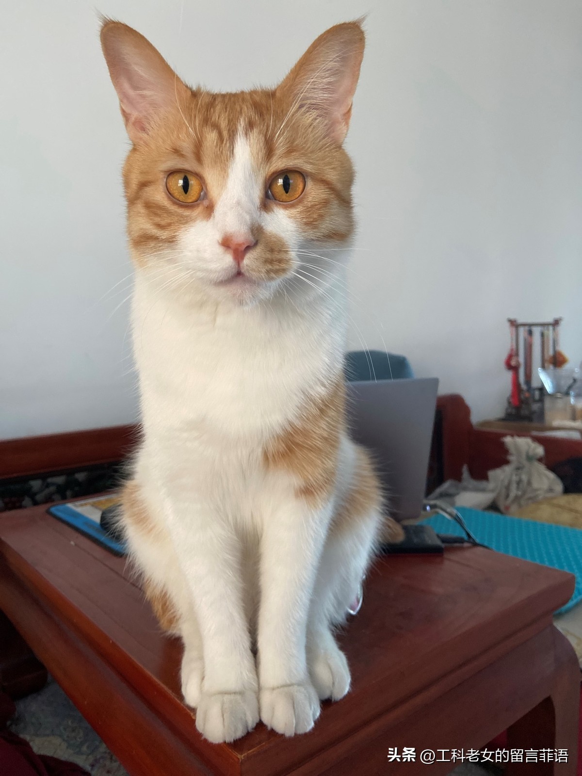 家里小猫标准照。橘白,这样看着橘-白呼应,一条腿带一点橘色,还有点像斜披的袈裟。