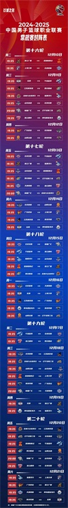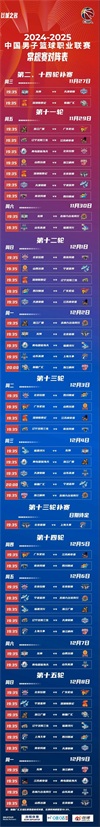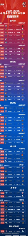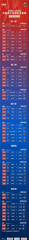 24-25CBA赛程表安排出炉,10月12日揭幕战“辽浙大战”CCTV5直播