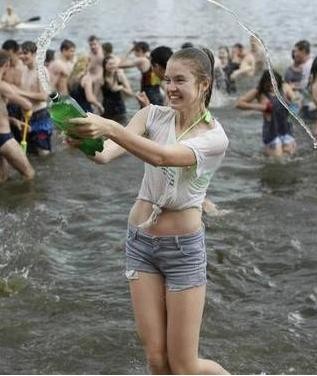 在这一天有许多的年轻男女会走上街头开始泼水,而这其中也是有一定的隐喻的。许多性感的乌克兰美女就会在街上大胆“求爱”,要是看中了哪一位年轻小伙子,就会将水泼到他们身上,以此作为求爱的信号。