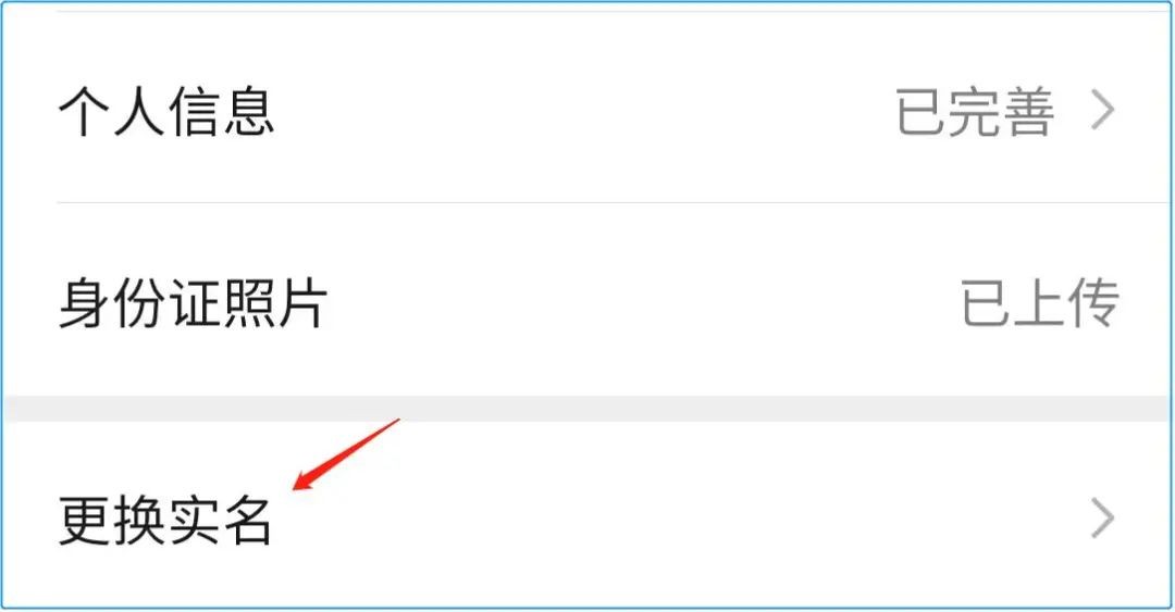 3.这个时候在身份信息页面中,就可以看到“更换实名”这个功能了,我们点击进入。