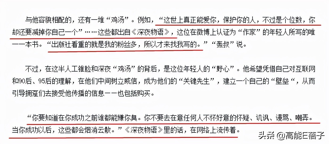 里面的一些话也曾受到一些网友的追捧。他后来接受采访时,从不避讳地说出出版社是看中他粉丝多才找他写书的这个事实。