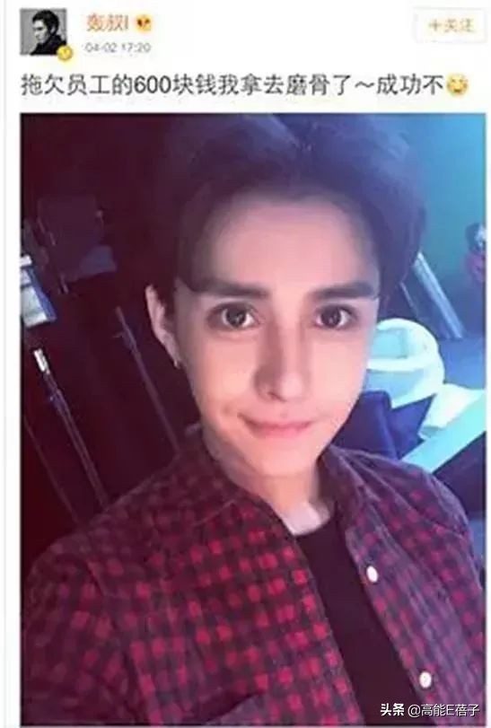 他干脆在社交平台承认了整容一事,后来还自黑拿着拖欠员工的600块去磨骨了。