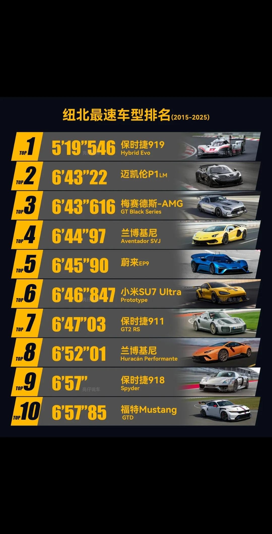 也是在不久前,在纽北全国测速最快车型中小米su7 Ultra prototype获得全国第六的排名!