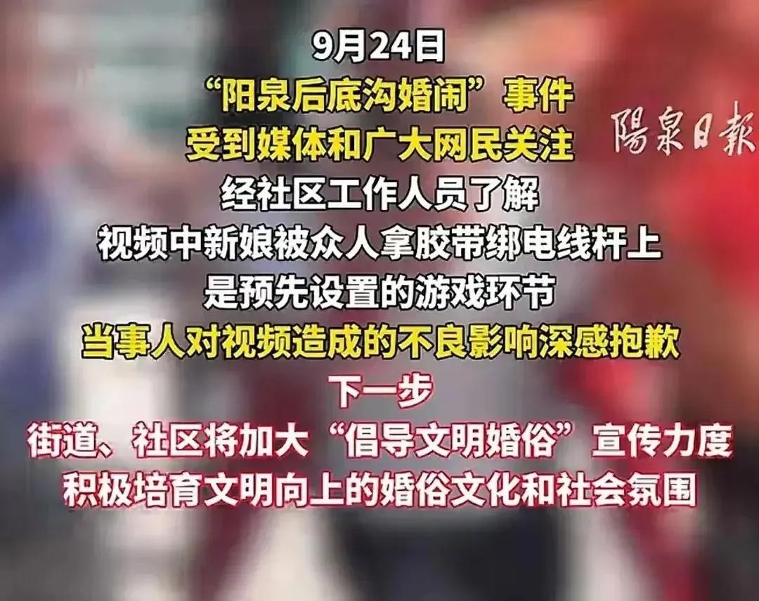 回望这起山西阳泉的恶俗婚闹事件,我们为新娘的遭遇感到痛心。
