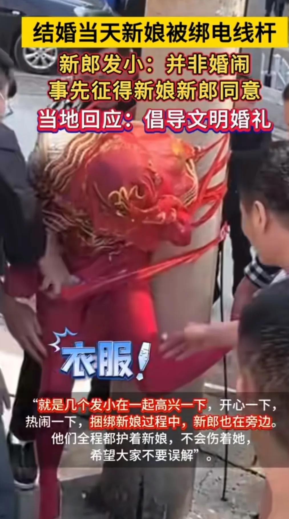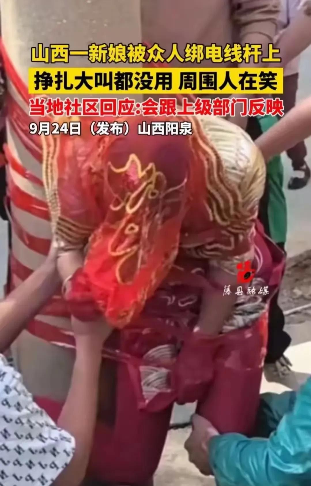 山西惊现恶俗婚闹,新娘被掀裙子绑在电线杆上,哭喊“别摸别摸”