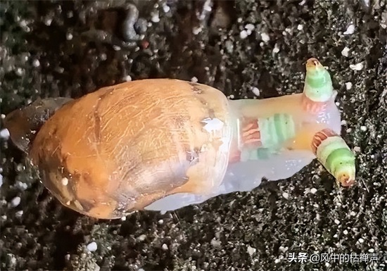 早在一个世纪前,人们就认识到了双盘吸虫,但是直到2013年才有波兰生物学家托玛斯-维索罗夫斯基证实双盘吸虫能够控制蜗牛的大脑,而双盘吸虫彩蚴吸虫科寄生虫最喜欢的是琥珀螺蜗牛,彩蚴吸虫也是双盘吸虫的一种。彩蚴吸虫的颜色五彩斑斓,只看颜色还有点好看,但是别看它小,它是能控制蜗牛大脑的寄生虫。