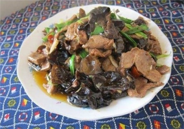 香菇30克,黑木耳10克,新鲜猪肝200克,葱、姜、黄酒、鸡汤、精盐、味精、植物油、香油、酱油、甜味剂、湿淀粉各适量。