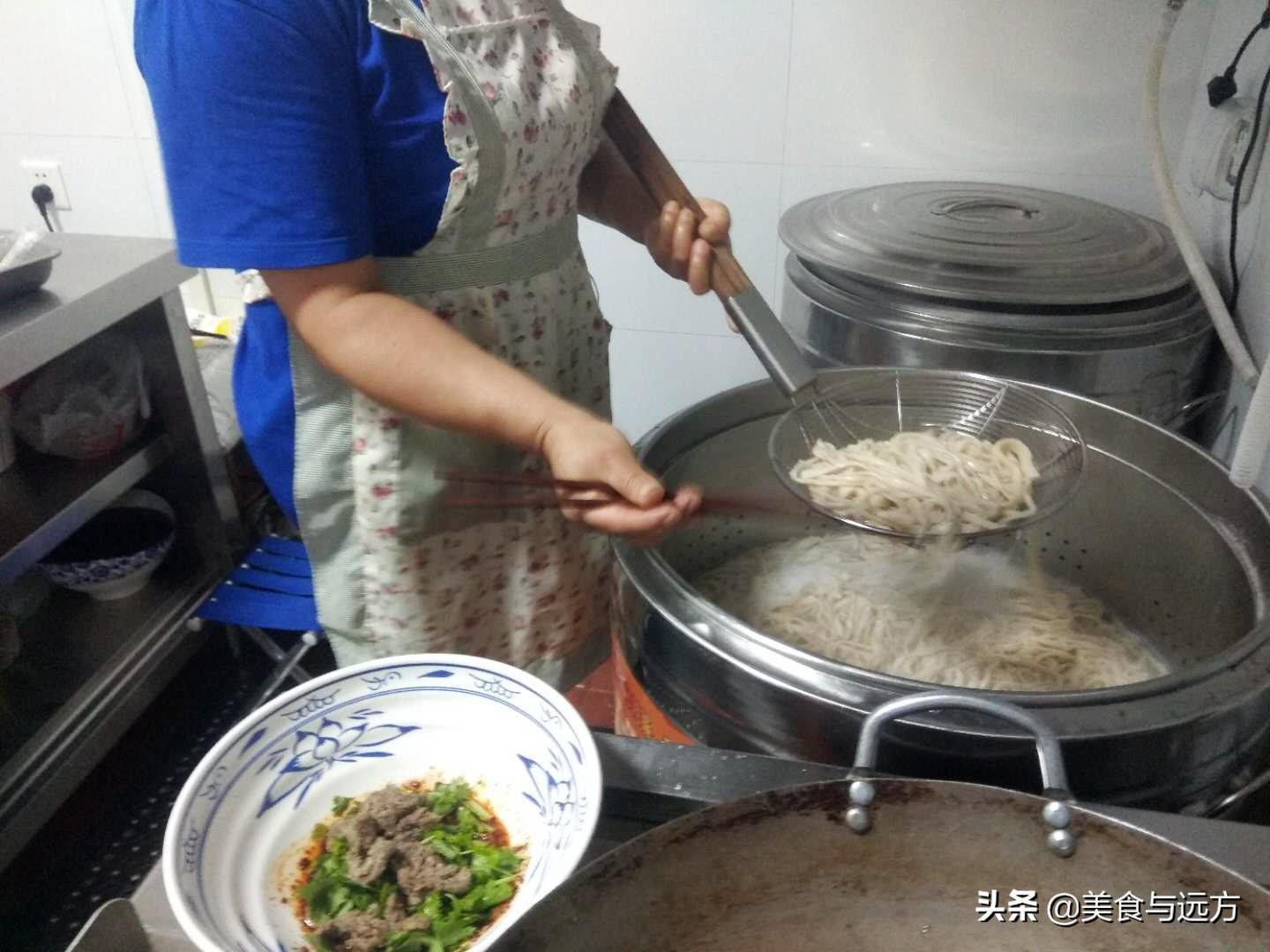 面条劲道,不是一般劲道,是特别劲道。这面条不是拉条子,也不是搓棍棍,而是像扯面一样用手撕开的,看起来粗细不一致,但是很入味,加之底料中加入了牛油,有一股浓浓的香气。