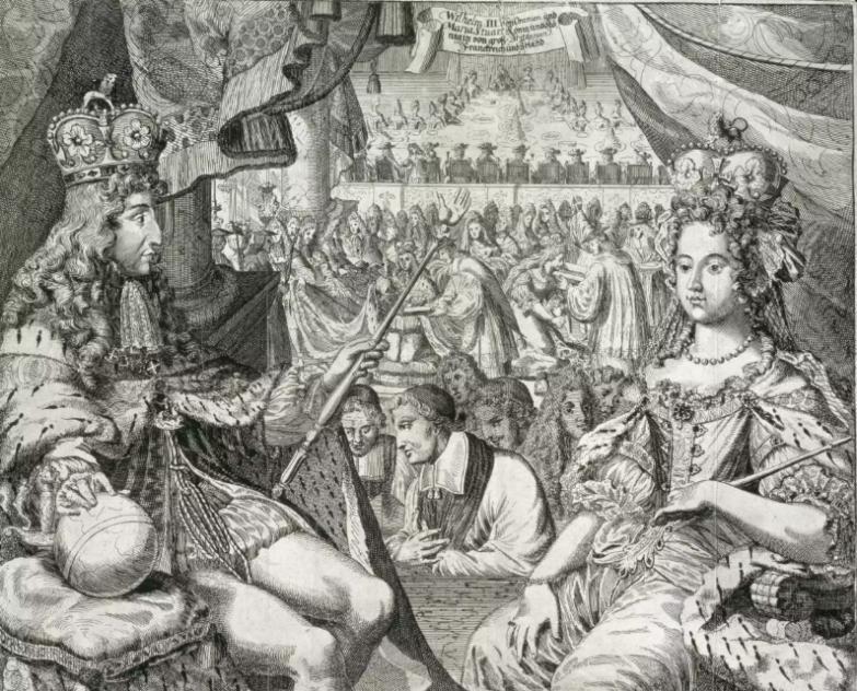 公元1688年,英国的资产阶级与新贵族集团联起手来,将意在恢复英国天主教势力的英王詹姆斯二世推下了王座。为了防止君主权力过大从而影响到国家的正常发展,英国人选择让能够接受自身提出的条件的尼德兰执政威廉前来做英国的国王,是为威廉三世。