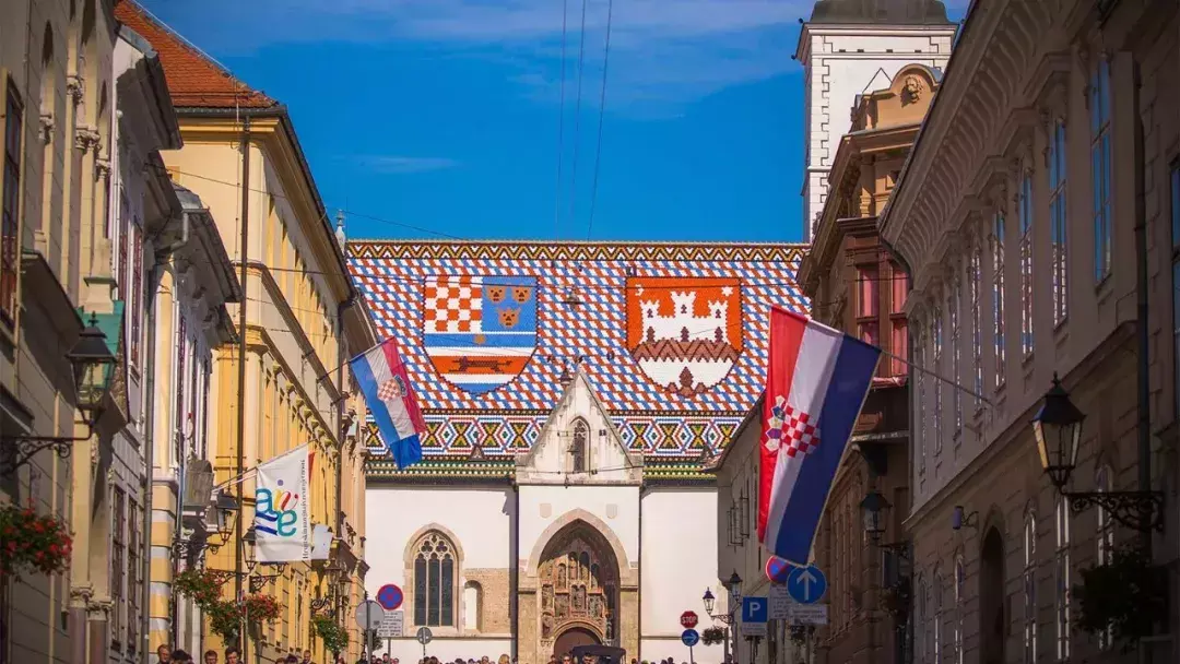 克罗地亚的首都萨格勒布早在古罗马时期就已经建立了城市,市中心的圣马可教堂白红蓝相间的房顶是克罗地亚的标志,类似的图案也出现在克罗地亚的国旗上。