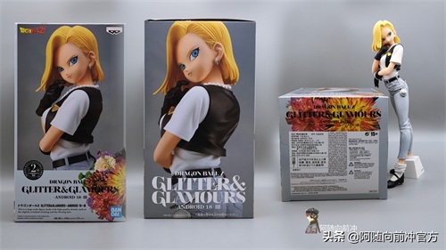 闪耀魅力想来是一弹两款,用不同的配色方案来贴合动画或漫画中的原画,而一般来说,B款都偏向走的是异色款。对于这款休闲装的人造人18号,阿随君可能是比较少的单买一款却选B款的了,哈哈哈,灰色裤子和白色袜子是她的主要特点和区别点。这从盒子封绘上就一目了然了。盒子嘛,也是闪耀魅力系列一贯的风格了,官拍图配上盛开的花朵,寓意明显,简单明了。开盒后,手办被分成了上半身、下半身和脚桩三部分,非常容易组装,而且这次的脚桩也比较小巧,对摆放空间很友好了。