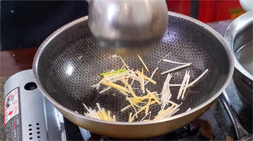 锅中加入适量的色拉油,葱姜一起小火炒香,主要就是把味道炒出来这样吃起来更香。