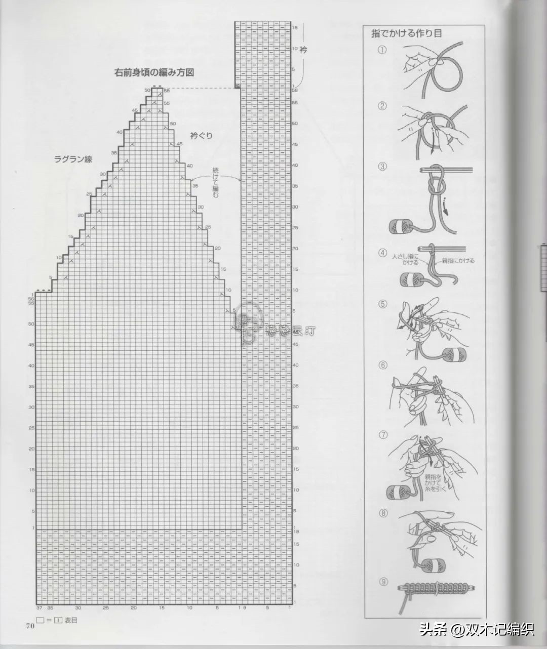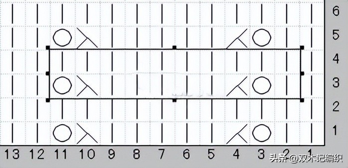 3.25针起针203针,织3行搓板针换3.5针织花样A16行。下图中方框内2-11针为重复花样,左右为边针。