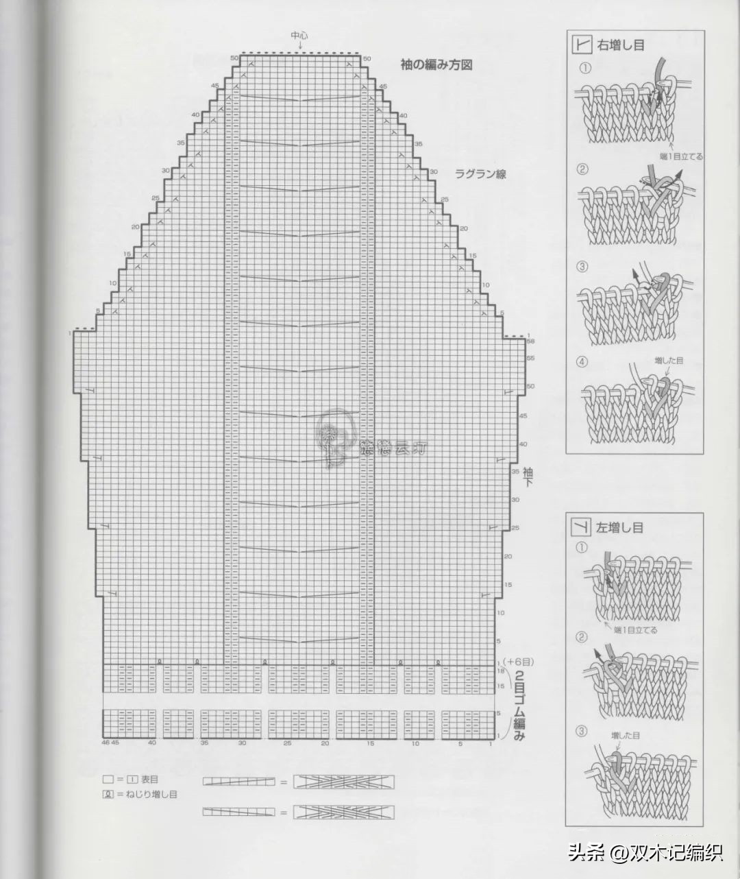 3.75针,将右前片28针,右袖35针,后片56针,左袖35针,左前片28针依次穿入。共182针,分散减9针至173针,织花样C(译文育客花样有误,我重新画了)。下图中3-12针为一个单元花,左右为边针。