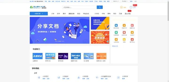 这是一个为广大教师免费提供课件、教案、试卷等资料的网站,覆盖小学、中学和高中的各个科目,教材有多种版本可以选择,还提供主题班会、教学计划、教学总结等模版。
