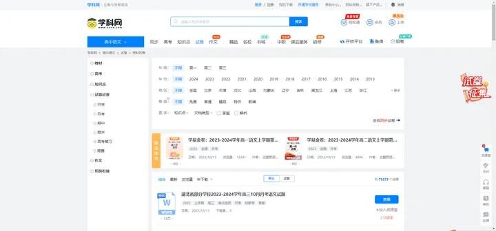 这是一个提供大量试卷的网站,包括小学、初中和高中的语文、数学、英语和其他科目的试卷,我们可以在这里找到最新的试卷,并免费下载(部分是要收费的)。