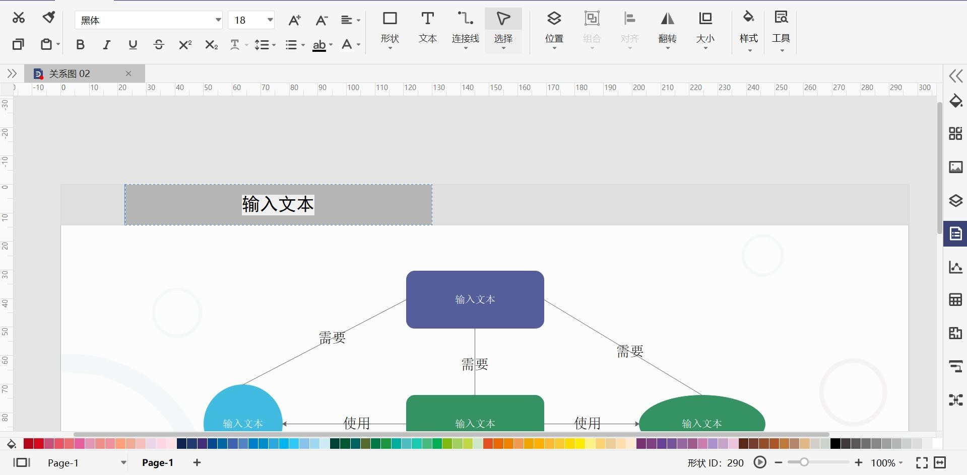 第四步:双击文本框,替换关系图模板里的文字。也可以按照自己所需,添加相关文本框,使关系图更加完整美观。