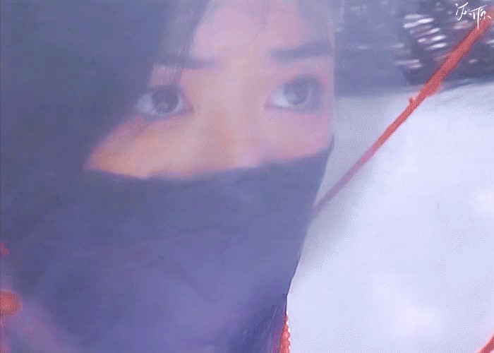 眼中含情,面纱遮挡不住她的柔情,