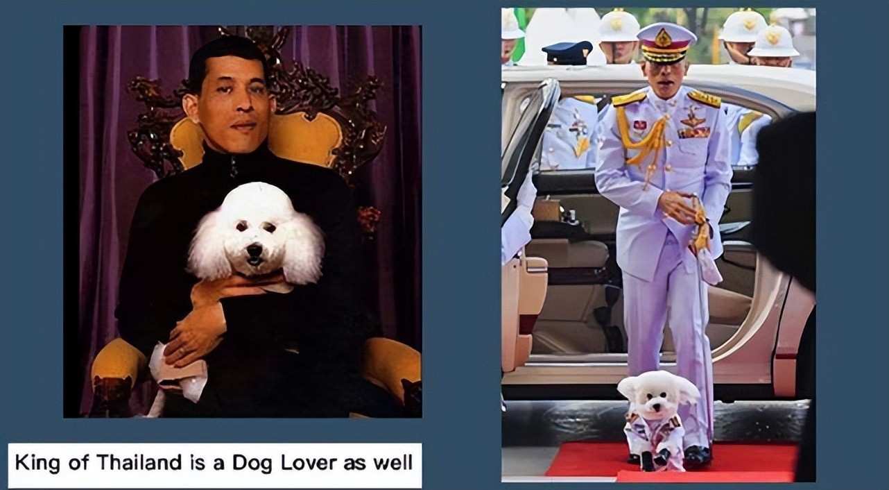 这条狗是拉玛十世的“挚爱”,不管是出席什么场合,都得带在身边;就算是不带老婆,也得带着这只狗。