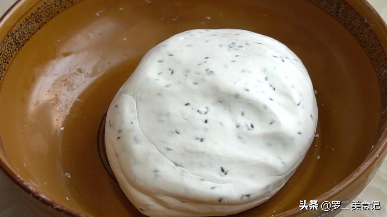 2.再往里面加入一把黑芝麻,搅拌均匀,再下手揉成面团,盖上保鲜膜 松弛10分钟。因为糯米粉没有筋性,所以揉的时候要轻一点,不然容易散开。