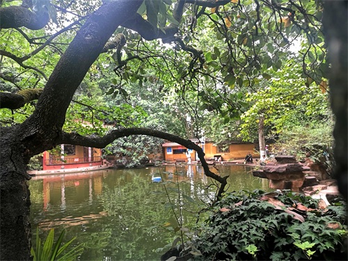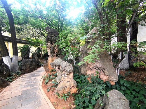 前园基本以原寺庙的三进院宇为主,亭台楼阁,假山水榭,花木竹林,回廊曲桥,错落有致。