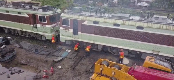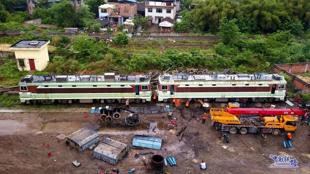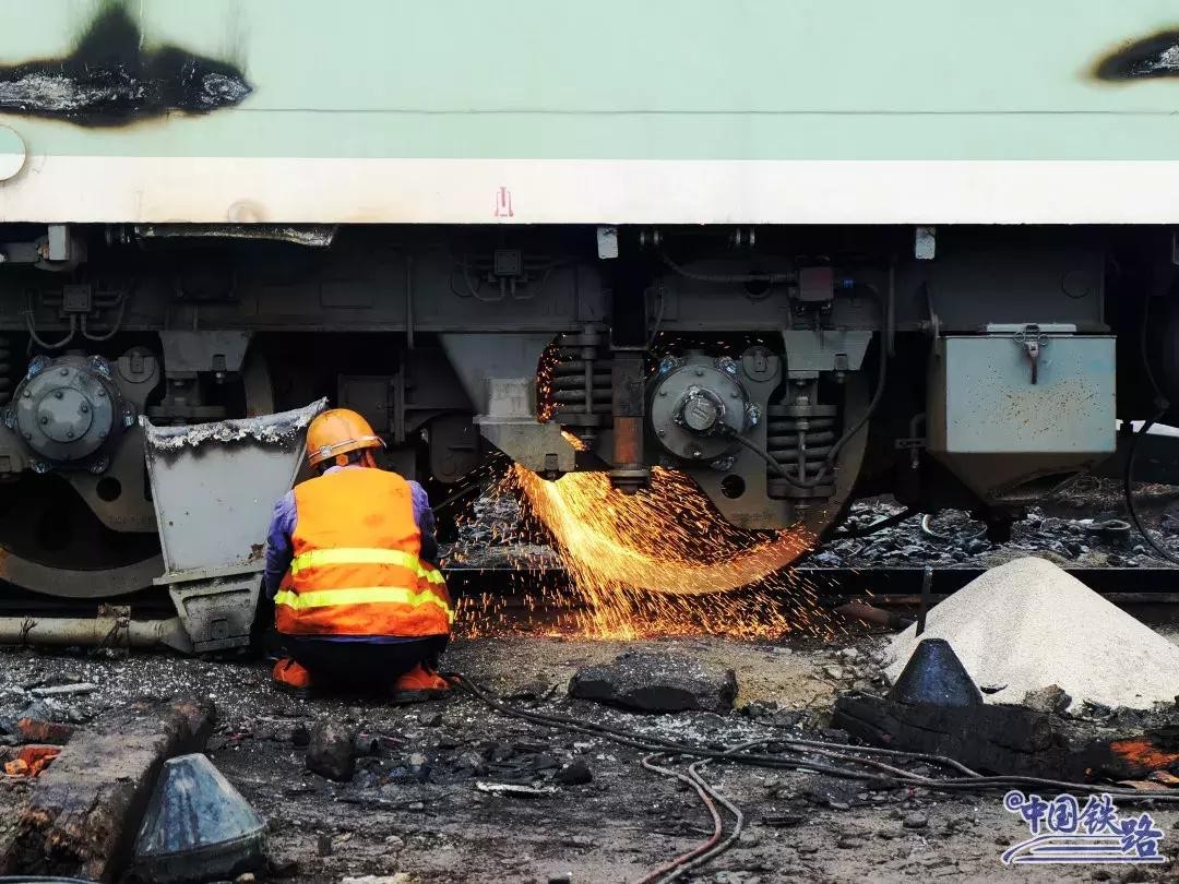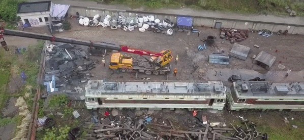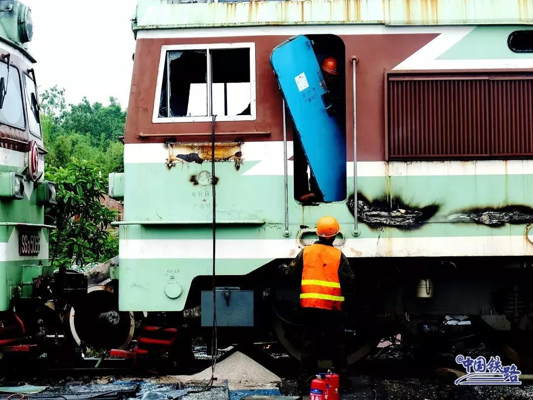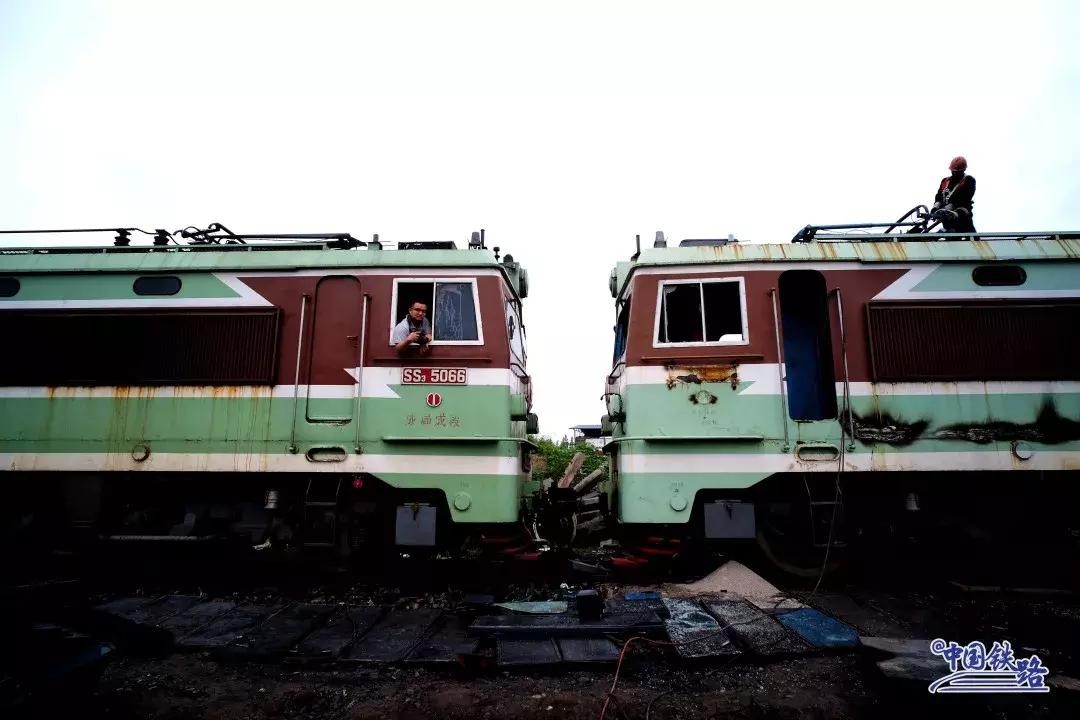 5月5日,负责拆解的工作人员使用氧焊切割的方式对编号为SS3 0418的机车进行分解,车钩、铭牌、转向架拉杆、操纵台、受电弓,在高温切割下,重重掉落在地上。