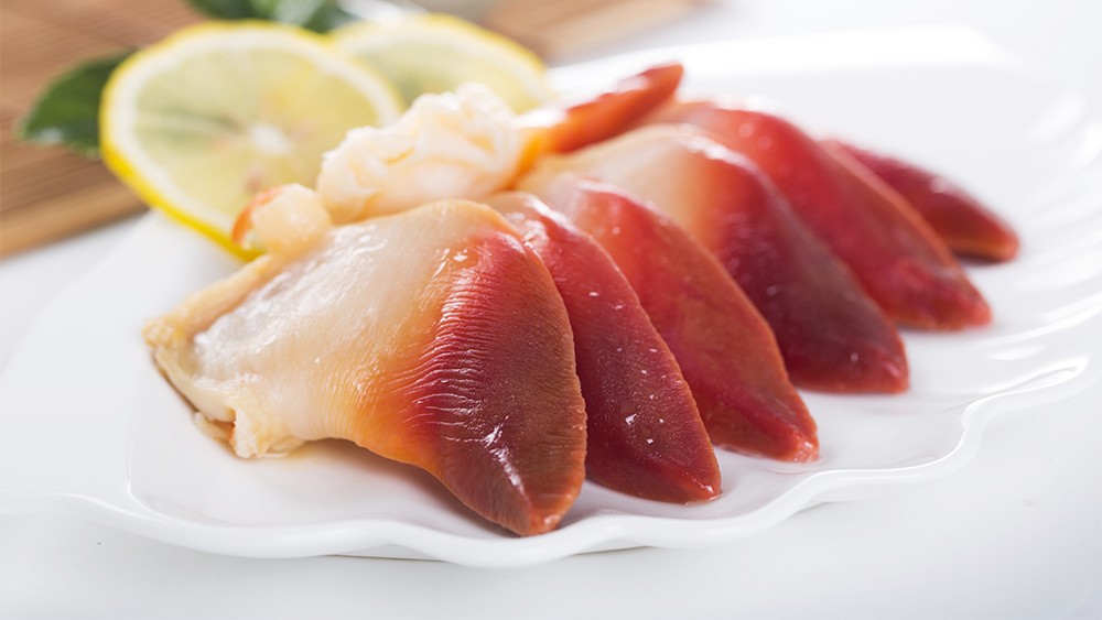 有一些远道而来的珍贵海鲜,为了保鲜都会经过烫熟及急冻处理,但并不影响它的风味与口感,依然是值得我们一尝的海鲜刺身。