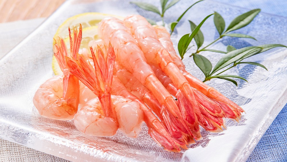 北极甜虾在自然解冻以后,作为刺身生吃,风味独特。