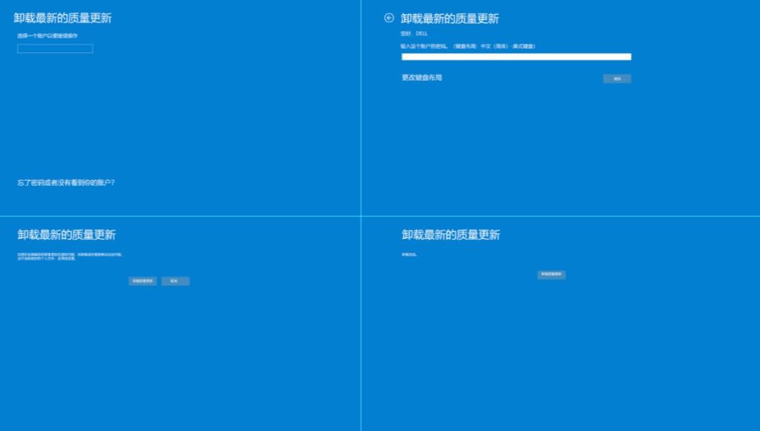 Step3:按照提示输入账户密码—选择【卸载最新的质量更新】—点击【已完成】,然后重新启动进入系统即可。