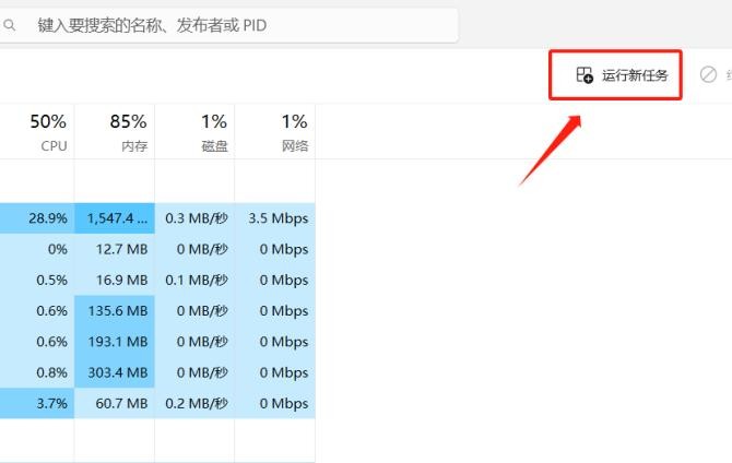 Step2:打开【任务管理器】选择右上角【运行新任务】;