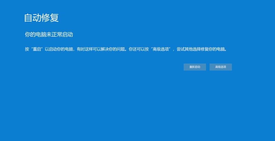 自动修复,你的电脑未正常启动