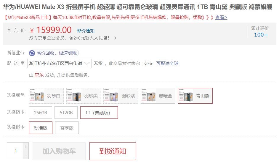 截至4月7日22:30,在京东自营的华为官方旗舰店上,华为P60 Art的512G和1TB版本都有货,而华为Mate X3全系售罄,连15999元的典藏版都无货。